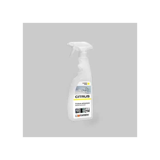 PULITORE ANTICALCARE 'CITRUS' 750 ml - Pulitore anticalcare per superfici in ceramica, pexiglass, acciacio, rame, ottone,etc. Elimina ossidazioni su rubinetterie e ceramiche dei bagni. Estratto dall'acido citrico di origine naturale. Pulisce, lucida e brillanta contemporaneamente. Ottimo anche come pulitore antiappannante per i box doccia.