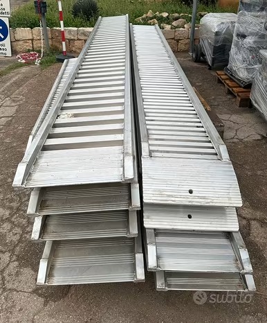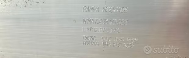 RAMPE DI CARICO VARIE MISURE : ITR 2500 mm peso di carico 40 q.li € 465,00 + IVA ; STP 3500 mm peso di carico 50 q.li Montante 110mm € 500,00 + IVA ; STP 4000 mm peso di carico 40 q.li Montante 110mm € 560,00 + IVA STP 4000 mm Peso di carico 50 q.li Montante 135mm € 920,00 + IVA.
