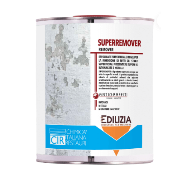 Superremover è il prodotto super veloce in gel per tutte le superfici. Il prodotto contiene una miscela di particolari solventi che agiscono selettivamente su strati grassi e sintetici tenaci, stratificati e invecchiati permettendo una facile e veloce rimozione, senza alterare o danneggiare la consistenza dei supporti. La rimozione dello strato viene facilitato dall’azione “esfoliante ” del prodotto, permettendo la sua facile e veloce rimozione con una spatola metallica. La particolare formulazione in gel consente l’utilizzo su murature in facciata senza che il prodotto evapori o coli a terra.