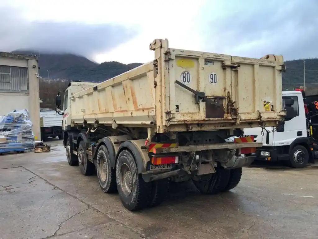DESCRIZIONE - Autocarro in ottime condizioni generali, ribaltabile con sponda laterale sinistra ad apertura idraulica, 4 assi, 8x4, Euro 5, cambio manuale, sospensioni balestra, bloccaggio differenziale