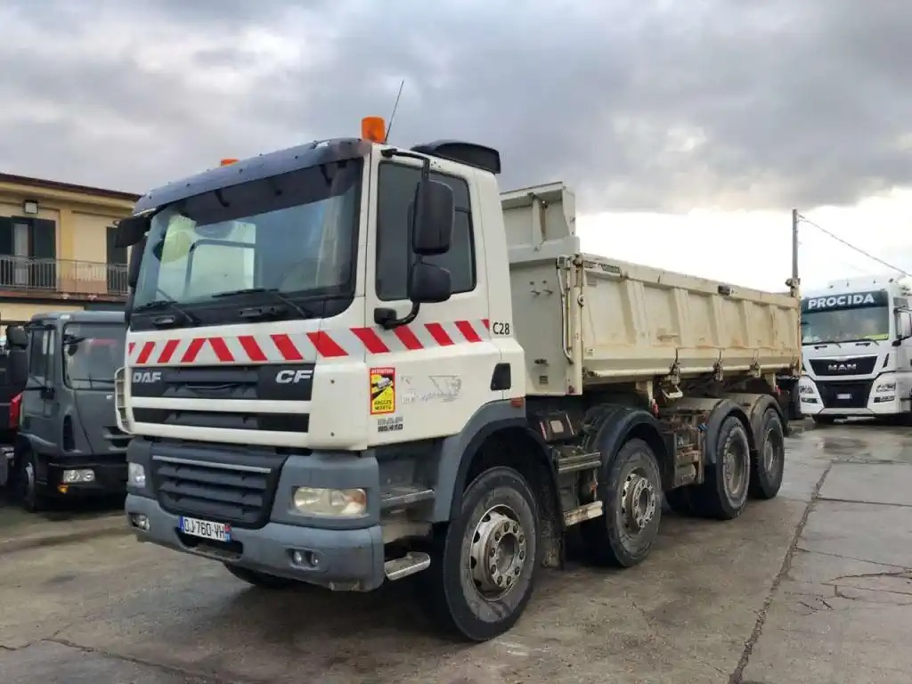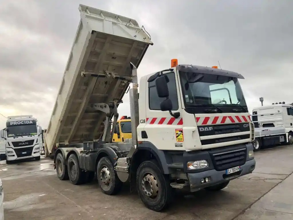 Autocarro in ottime condizioni generali, ribaltabile con sponda laterale sinistra ad apertura idraulica, 4 assi, 8x4, Euro 5, cambio manuale, sospensioni balestra, bloccaggio differenziale