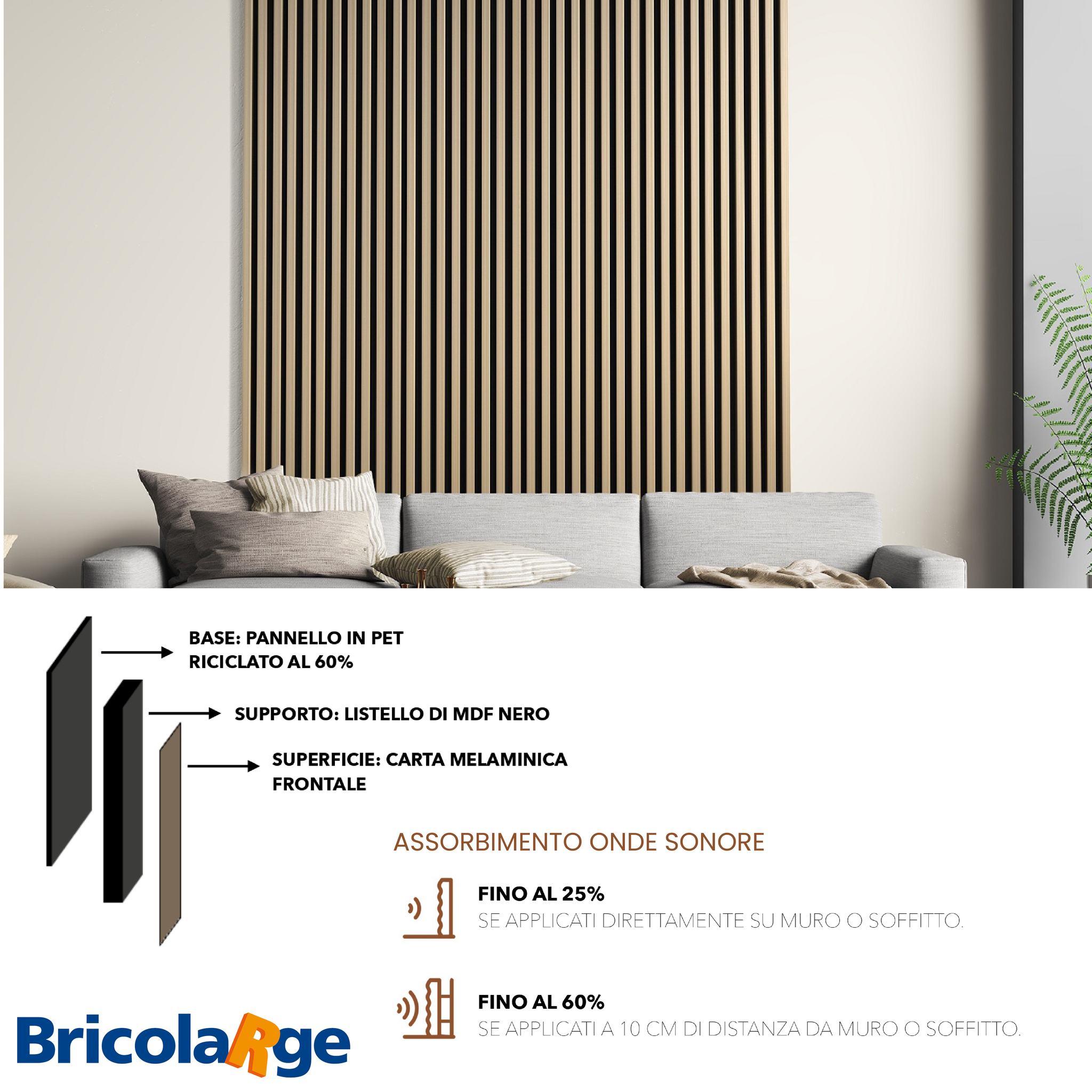 Superficie: Carta Melaminica frontale. Assorbimento onde sonore.
