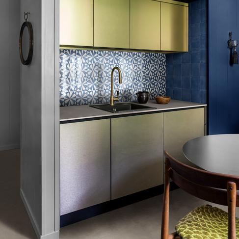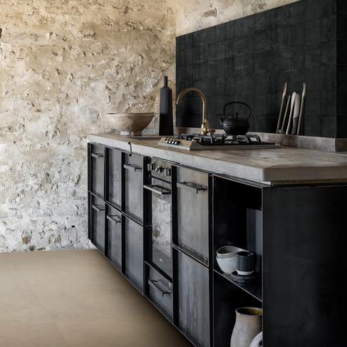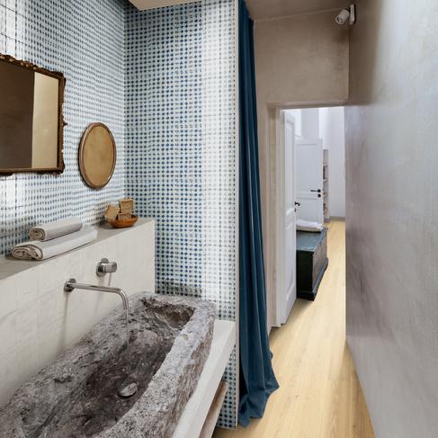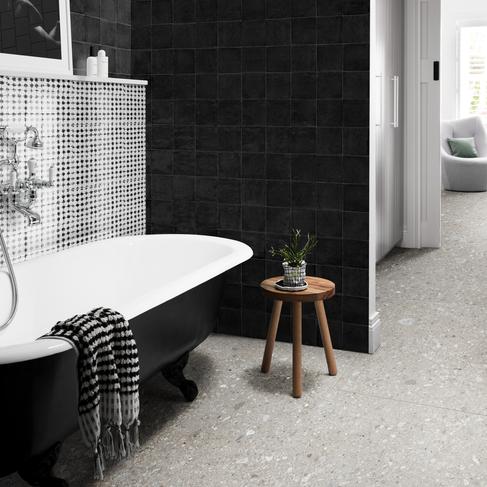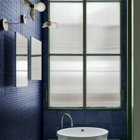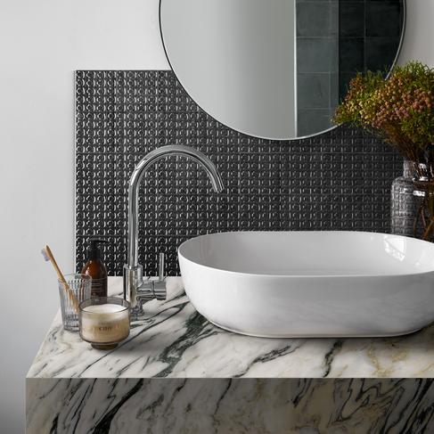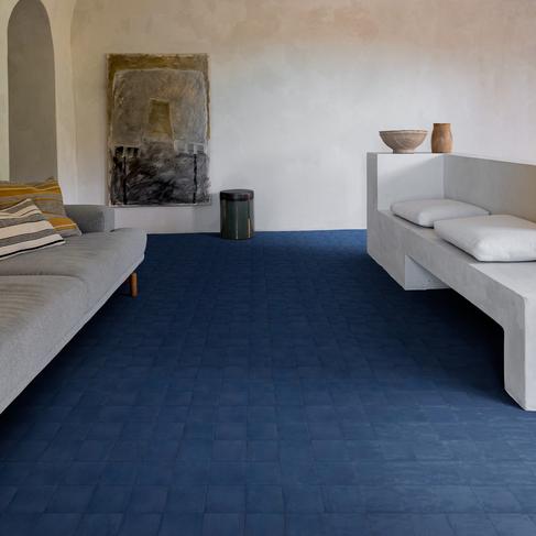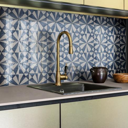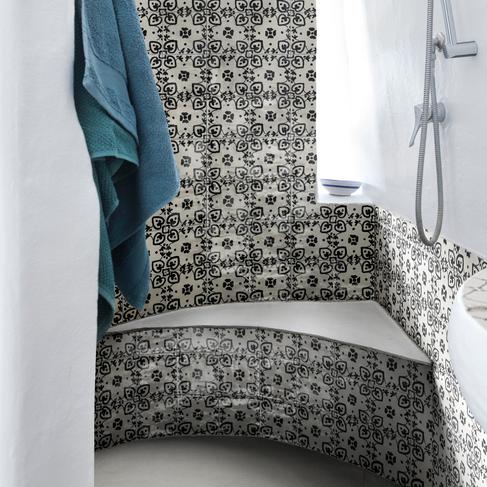 Due superfici diverse in un’unica collezione che riprende la manualità dei ceramisti: semi-opaca per le mattonelle a campo pieno e le strutture tridimensionali nei colori Bianco, Blu e Nero, e lucidissima invece per i cinque soggetti decorativi classici in cui la densa pasta ceramica riprende la mutevolezza del fatto a mano.