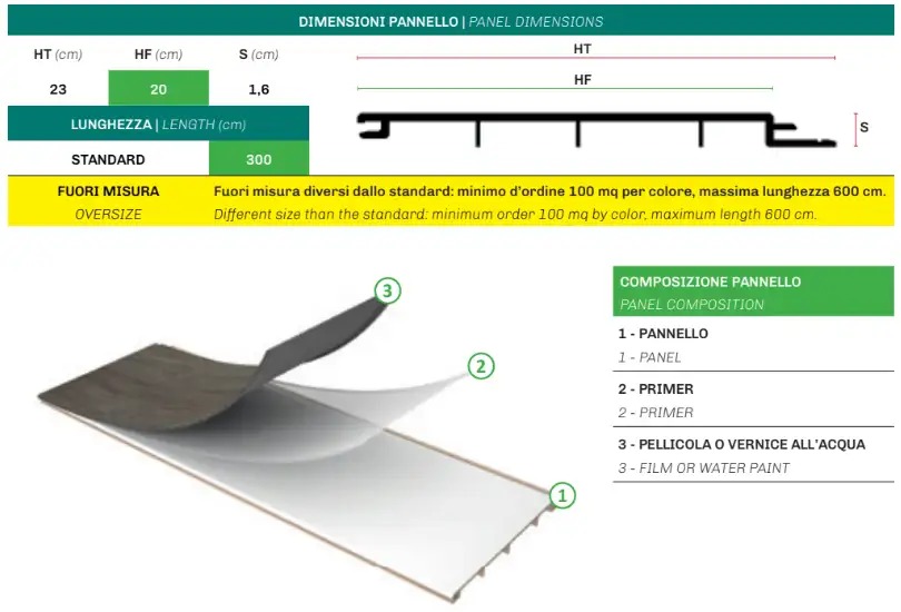ISO20 รจ il pannello di rivestimento per esterni effetto perlinato con sistema di fissaggio a scomparsa da 20 cm di larghezza netta per 1,6 cm di spessore.