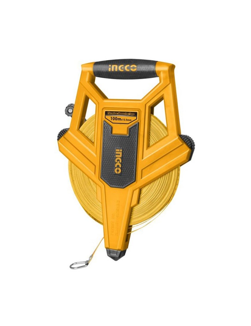 Rotella metrica professionale Ingco Hfmt82100 con rapporto di trasmissione 3: 1 per riavvolgimento rapido. Lunga 100 mt e larga 12.5 mm.
