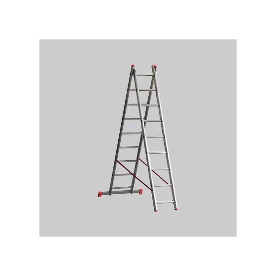 SCALA A DUE ELEMENTI 'OR2' 7+7 gradini - H. 3,40 mt - montante 60x25 mm - Professionale, trasformabile sia in scala d'appoggio che doppia. Montante in alluminio elettrosaldato con profilo montante esterno grecato per una presa sicura, piolo a sezione quadrata mm.28x28 in alluminio estruso antisdrucciolo, cerniera in acciaio con agevolatore di apertura, cinghie antiapertura, base allargata per una maggiore stabilità con tacchi ergonomici maggiorati, chiavette e bulloneria per montaggio in dotazione. Portata kg 150. Conforme alle norme UNI EN 131.