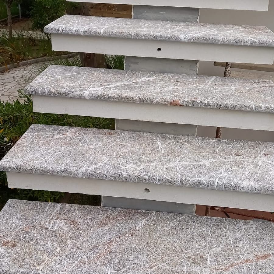 Scala in pietra Taormina martellata spessore cm 3 con lavorazione a Toro.