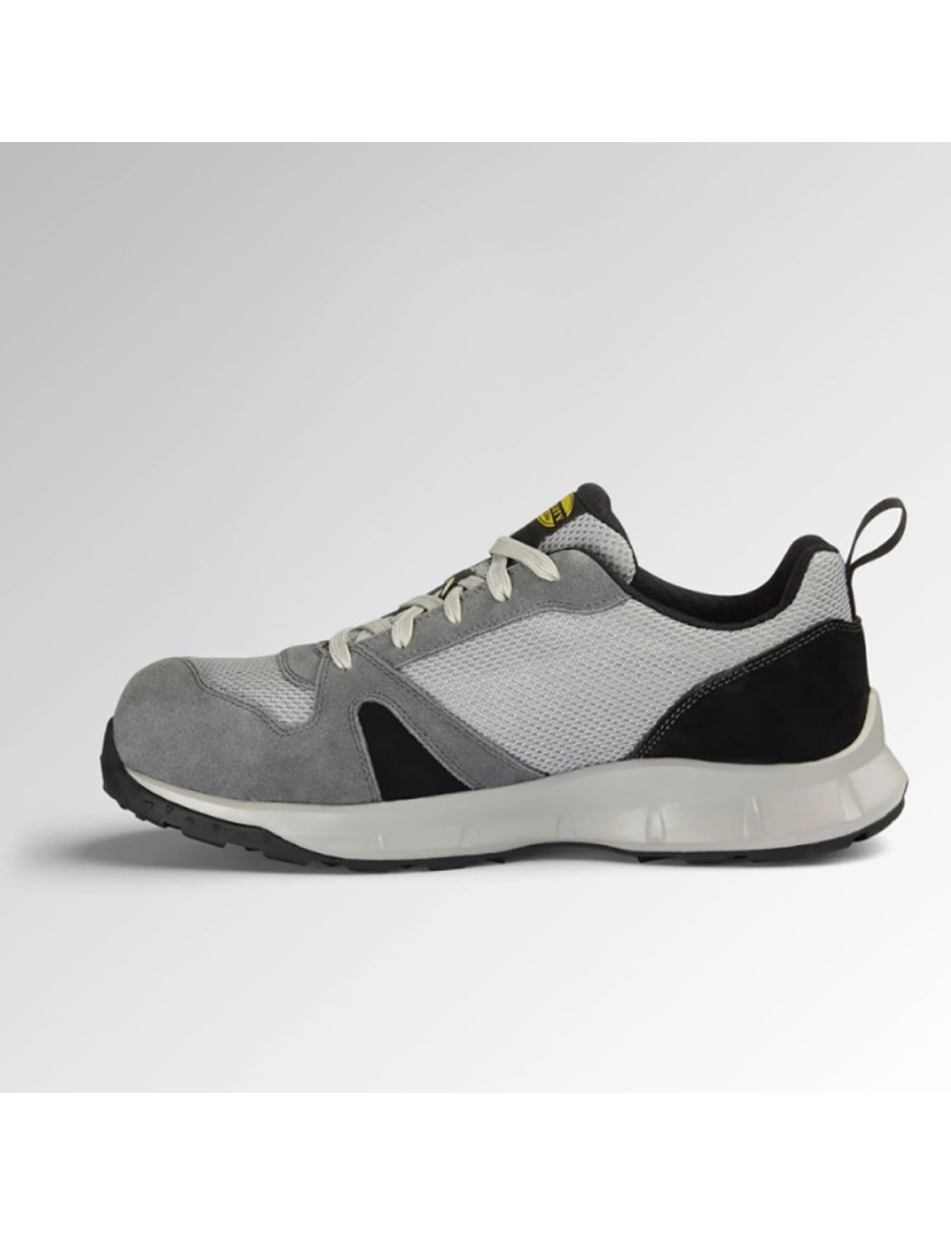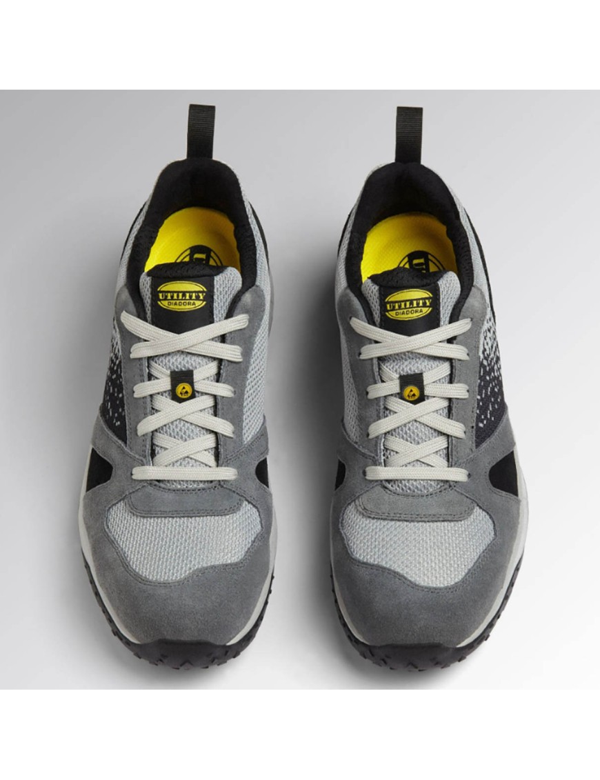 Scarpa antinfortunistica bassa Diadora Uility Lite Low S1PS FO SR HRO ESD colore Grigio castello - Grigio alluminio con puntale in alluminio 200J, inserto anti-perforazione KSOLE, fodera in air Mesh con anti-calzante in microfibra.