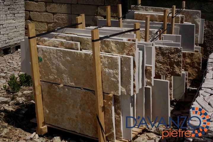La scorza rifilata è ricavata dal primo taglio esterno dei blocchi, essa è disponibile in diverse misure di spessore, di altezza e di formato a seconda delle necessità del cliente. Viene spesso usata per rivestire muri di grande entità come ad esempio la facciata di palazzine, ville e quant’altro.