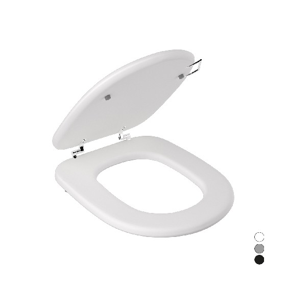Sedile in poliestere smaltato. Con maniglia. Soft-Close e con sgancio rapido.