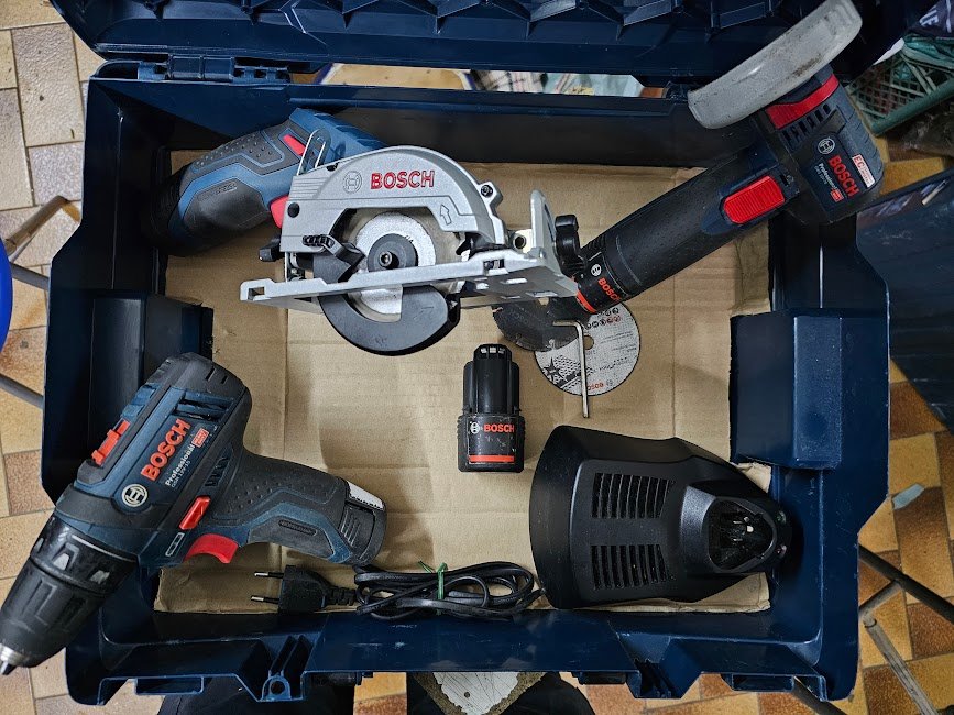 Sega circolare + mini smerigliatrice + Avvitatore. Caricabatteria+ valigetta tutto usato pochissimo come nuovo. POSSO SPEDIRE.