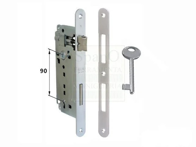 Serratura per porte interne AGB D90 BT cromo satinato – tipo PATENT GRANDE – Entrata foro chiave 50 mm. – Interasse maniglia-foro chiave: 90 mm. – Bordo: Tondo – Fintura: Cromo Satinato – Chiave inclusa.