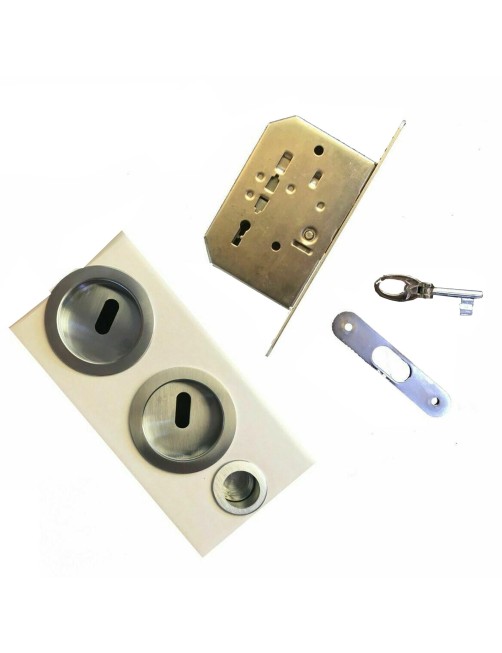 Serratura per porte scorrevoli completa di chiave e maniglie tonde colore cromo satinato. Mariva propone un design unico e perfetto con tutti i tipi di arredamento.