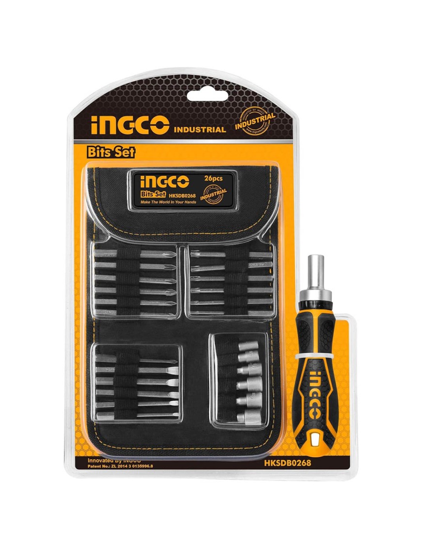 Ingco HKSDB0268 – Set 26 Pz Cacciavite e Inserti è un set completo di 1 cricchetto, 18 bit da 65 mm (PH, PZ, SL, T) e 6 bussolotti (5-10 mm), tutti realizzati in resistente acciaio CR-V. Include una pratica custodia e confezione in doppio blister. Ideale per lavori di avvitamento e serraggio, offre qualità e versatilità in un unico kit.