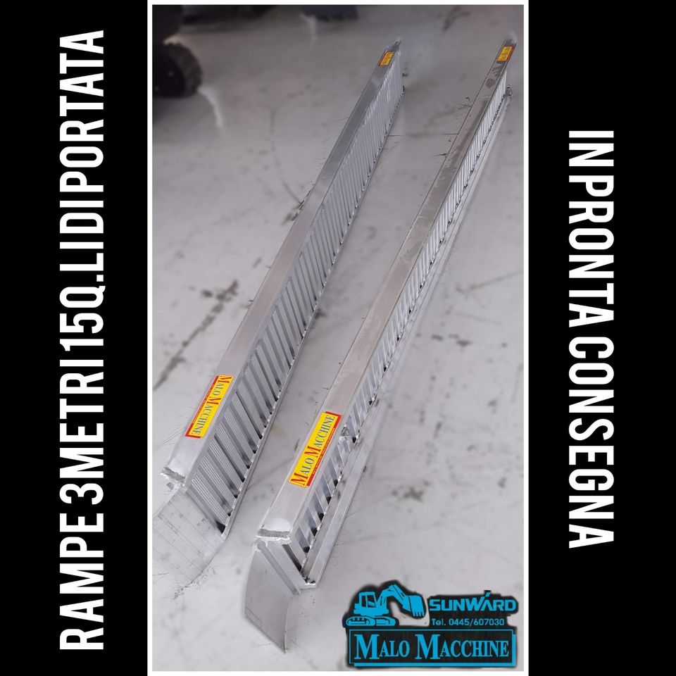 Coppia di rampe 70x3000mm con bordo Lunghezza: 3000mm Peso alla coppia: 35Kg Portata massima /passo: 12/1000 - 14/1500 - Larghezza interna: 250mm Larghezza esterna: 300mm Altezza bordo: 20mm SPEDIZIONE IN TUTTA ITALIA MALO MACCHINE 0445 580826 info@malomacchine.it.