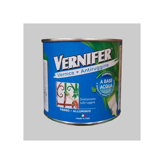 SMALTO ANTIRUGGINE ALL'ACQUA 'VERNIFER' BRILLANTE 500 ml - Bianco - Tinta brillante. E' uno speciale smalto acrilico all'acqua che grazie alla sua particolare formulazione conferisce al manufatto trattato proprietà anticorrosive, inibendo così la formazione di ruggine. Dotato di ottima bagnabilità del supporto, ottima distensione ed elavata resistenza all'acqua. E' adatto sia per interni che per esterni. Contiente un basso livello di composti organici volatili. Inodore. E' formulato al fine di ridurre l'impatto ambientale, per rispettare l'uomo e l'ambiente. Rapida essicazione.