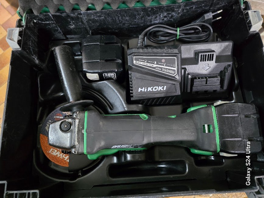 Smerigliatrice a batteria HIKOKI G 18DBL 18V brushless con due batterie da 5Ah e valigetta originale usata pochissimo.
