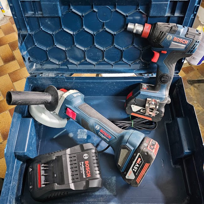 Smerigliatrice BOSCH + Avvitatore GDX 18V-210C -210 Nm doppia funzione ( attacco 1/2" e attacco per inserti ) due batterie da 6AH funzionante perfettamente.
