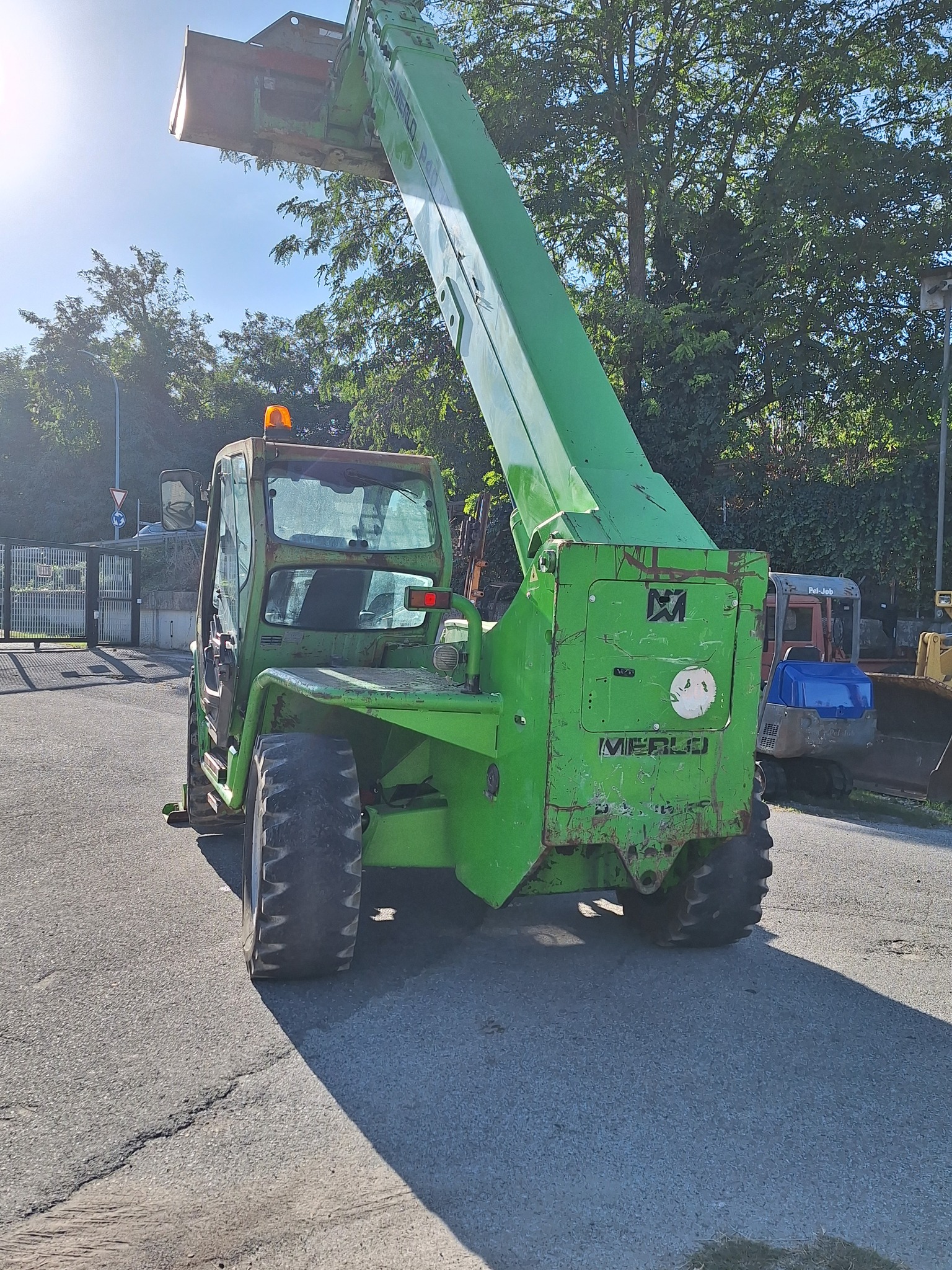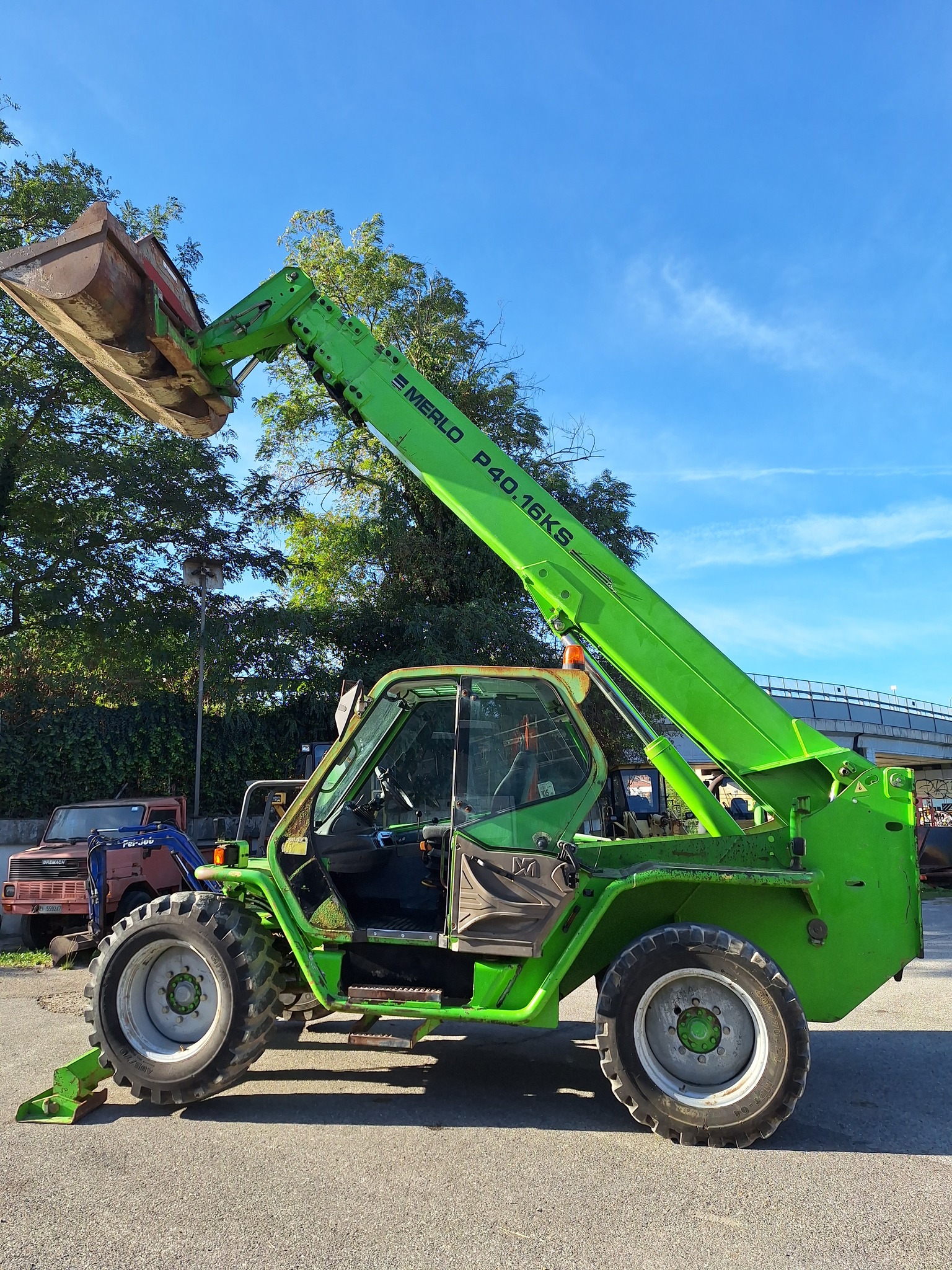 Sollevatore Telescopico MERLO 40.16 KS Panoramic con motore Deutz. Altezza 16 metri. Portata 40 q.li. Anno 2004. Macchina completa di benna, forche e gancio.