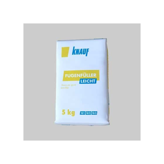 STUCCO IN POLVERE PER CARTONGESSO 'FUGENFUELLER LEICHT' 5 kg - Composto a base di gesso additivo. Utilizzato per la stuccatura di giunti e l'incollaggio di lastre di cartongesso, posa di nastro armato e di paraspigoli per lastre, stuccatura di superfici piane in calcestruzzo e calcestruzzo cellulare. Tempo di lavorabilità c.a. 50 minuti.