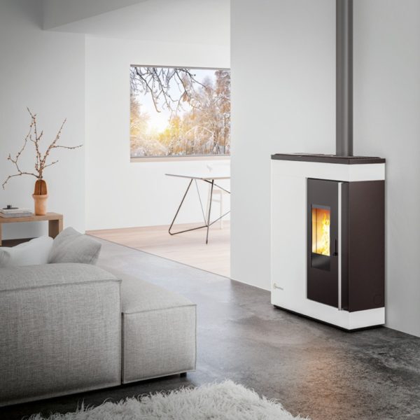 La FINE 14.3 rappresenta la nuova generazione di stufe a pellet ultra-slim, con profilo 92 × 35 × 112 cm e una silhouette moderna scandita da un elegante inserto angolare. Il top in ghisa, gli spigoli arrotondati e la maniglia in acciaio satinato le conferiscono un look raffinato, mentre il braciere in ghisa garantisce lunga durabilità e combustione efficiente .