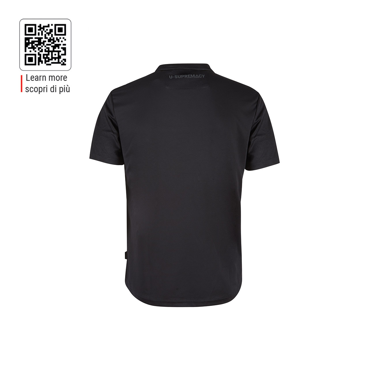 T-Shirt estiva con banda reflex sul lato sinistro del petto e stampa logo reflective “U-Power” sul lato destro per i colori Lime Stone e il Burnt Olive, mentre nella versione Black Carbon il logo è in transfer reflective nero e la banda è testurizzata in carbonio.