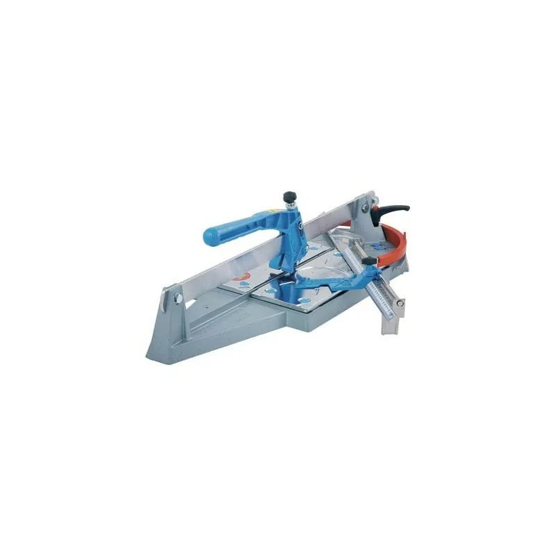 Per utilizzo professionale. in alluminio pressofuso ed acciaio nichelato. rotella in carburo di tungsteno con rivestimento in titanio. in grado di tagliare tutti i tipi di piastrelle con spessore fino a Mm. 22. Squadra goniometrica con doppia scala di misura: una per tutte le angolazioni. l’altra per la misura della diagonale per i tagli a 45°. Impugnatura con lubrificatore integrato e cilindro anti frizione. Piani molleggiati per lo spacco.