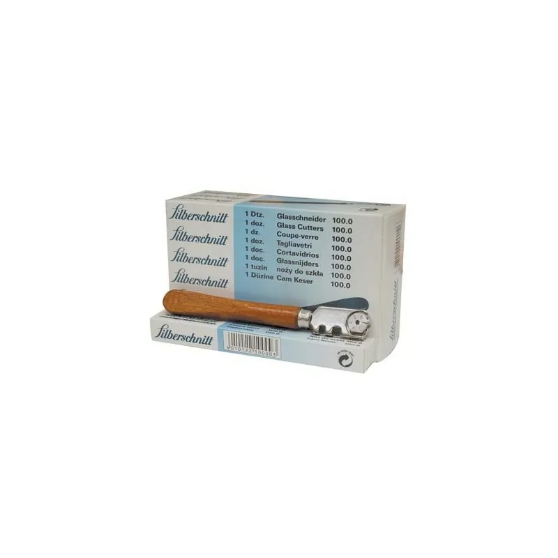 Con 6 rotelline di taglio in acciaio temperato. Rosetta e testina nichelate. Anello in feltro per la lubrificazione durante il taglio. Angolo di taglio: 130°. Distanza dalla riga: Mm. 2.5. Spessore di taglio: da Mm. 3 a Mm. 10. Diametro rotelle Mm. 4.5.