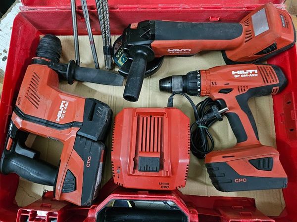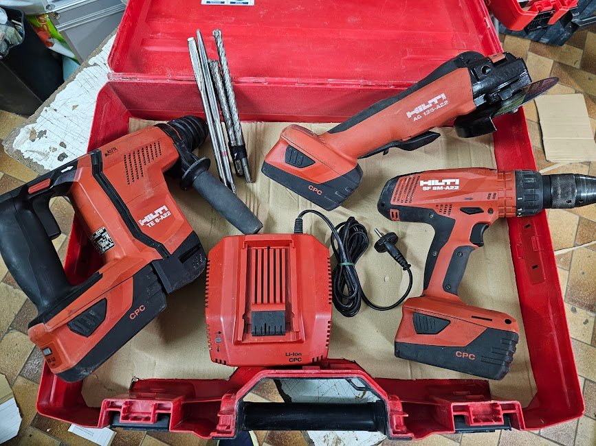 Tassellatore 3 funzioni + smerigliatrice da 125mm + avvitatore 4 velocita. 3 batterie da 5,2 Ah + caricabatteria, il tutto come fosse nuovo e perfetto al 100%.