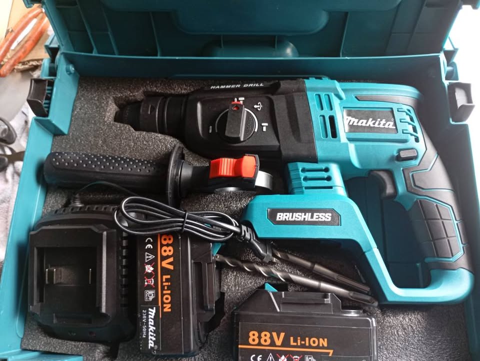 Tassellatore completo a batteria funziona benissimo 8 punte SDS poss Spedire 88 w 6 hp.