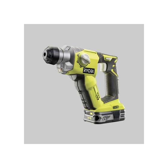 TASSELLATORE SDS-PLUS A BATTERIA 'R18SDS-125S' RYOBI 18V 2,5Ah - Tassellatore ideale per forare nel cemento e nella pietra. Attacco SDS+ per forature veloci ed un facile cambio delle punte. Quattro modalità per una grande versatilità d'uso (tassellatore, avvitatore, scalpellatore, posizione scalpello regolabile). Funzione scalpellatura ideale per applicazioni come la rimozione di piastrelle. Meccanismo pneumatico battente che rilascia 1.3J di energia di impatto rendendo semplice la foratura di materiali duri come la roccia. Luce LED per una maggiore visibilità dell'area di lavoro. Frequenza di percussione (colpi/min): 0-5000. Campo di foratura: Ø foro legno 16 mm, Ø foro acciaio 13 mm, Ø foro muratura 16 mm. In dotazione: 1 batteria e caricabatteria. Peso 2,1Kg.