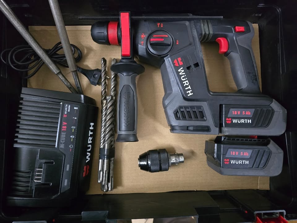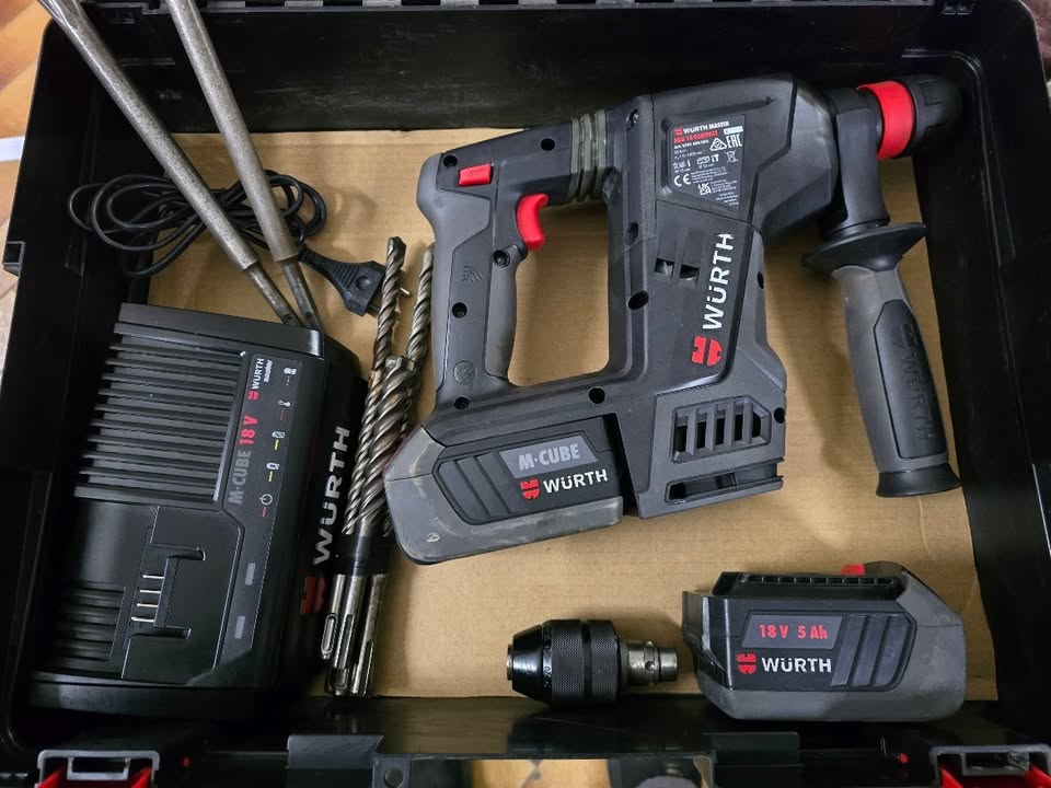 TASSELLATORE WURTH 18V con due batterie CUBE da 5 Ah pari al nuovo. In dotazione scalpelli + serie punte sds plus + secondo mandrino per punte normali. Tutto nella valigetta originale wurth.