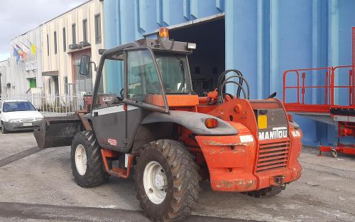Telescopico Manitou MVT 1135 motore Perkins. Altezza 11 metri. Portata 35 qli. Anno 1999. Macchina completa di pala caricatrice,forche e gancio. Targa e libretto di circolazione stradale.