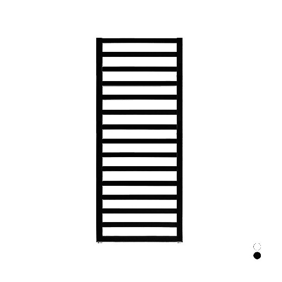 Radiatore scaldasalviette in acciaio, versione acqua calda con elementi quadrati da 25x25 mm e cornice perimetrale con profilo quadrato da 30x30 mm.