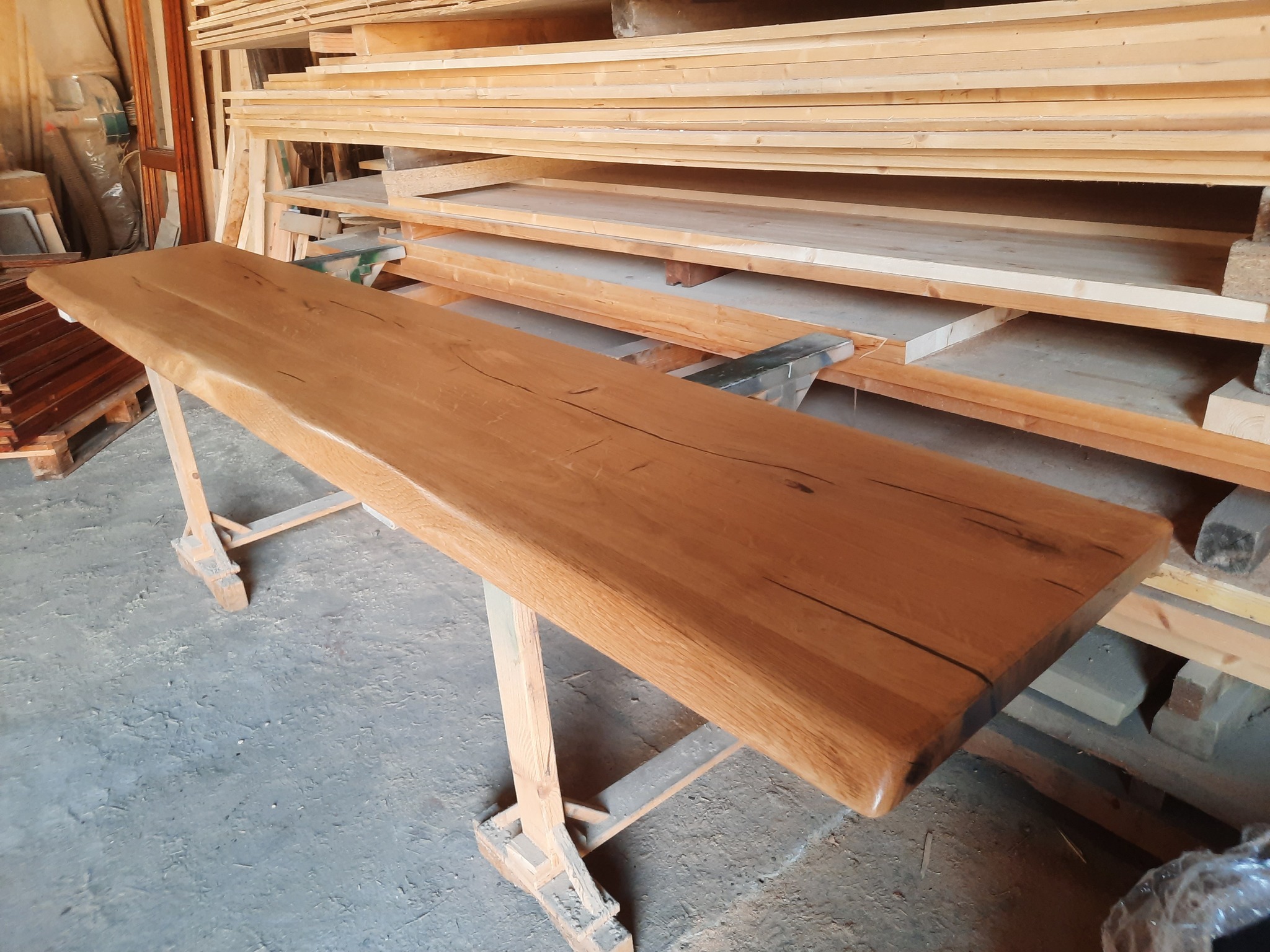 Un'altra splendida realizzazione di un Top in legno di Rovere Rustico bordo irregolare spessore mm52 larghezza cm.50 circa Lunghezza cm270.