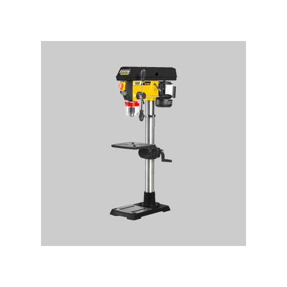 TRAPANO A COLONNA 'DP 12-941' 350 Watt - Regolazione velocità su 5 posizioni, da 580 a 2600 giri/min., inclinazione piano 45°, mandrino autoserrante da 13 mm, distanza mandrino-colonna 104 mm, corsa del mandrino 50 mm, piano di lavoro 193x160 mm con estensioni fino a 273x160 mm ed inclinabile, arresto regolabile di profondità della foratura con puntatore laser. Dimensioni mm.240x410x650h.