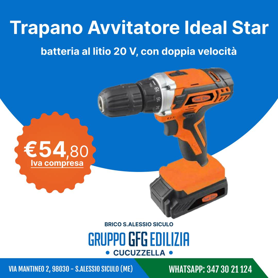 Trapano Avvitatore Ideal Star batteria al litio 20 V,con doppia velocità. 54,80 iva compresa. Spedizione a parte.