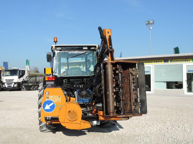 Ore 3165 ,aria condizionata,sollevatore anteriore con presa di forza,pneumatici anteriori misura 420/70 R 24 al 70 % buoni,posteriori misura 480/70 R 34 al 70% buoni,targa per la circolazione stradale,completo di decespugliatore HYMACH TDH P 800 TC2T, anno 2000,braccio telescopico due sfili,lunghezza massima mt.8, testata trinciante HYMACH TSL 100 TL (MT. 1) tutto con comando joystick all’interno della cabina ,omologato su carta di circolazione, tutto originale,meccanicamente in perfette condizioni,pronto per lavorare.