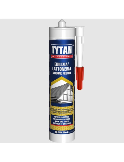 Tytan Professional Silicone Neutro Edilizia/Lattoneria è un sigillante siliconico neutro ad alte prestazioni per sigillature in lattoneria, serramentistica ed edilizia. Elevata resistenza agli agenti atmosferici e ai raggi UV. Elevata elasticità ed adesione. Eccellente adesione alla maggior parte dei materiali da costruzione, porosi e non porosi. Sigillatura di finestre in generale. Giunti di dilatazione nelle facciate. Sigillatura di carpenteria e falegnameria. Sigillatura di elementi in PVC.