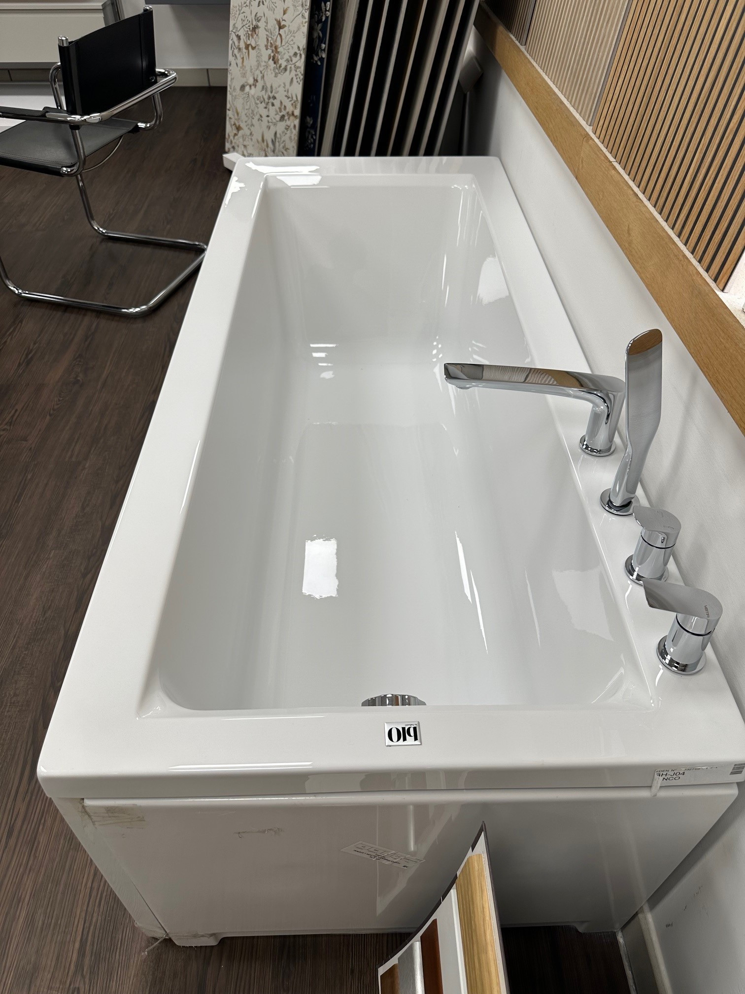 Accessoriato anche della rubinetteria Vema V30150, ovvero gruppo vasca completo di bocca di erogazione, deviatore e set doccetta.
