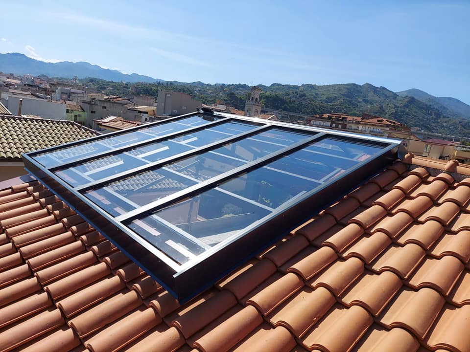 Copertura fissa da tetto con struttura in alluminio,tecnica facciata continua,con vetri antisfondamento 8/9