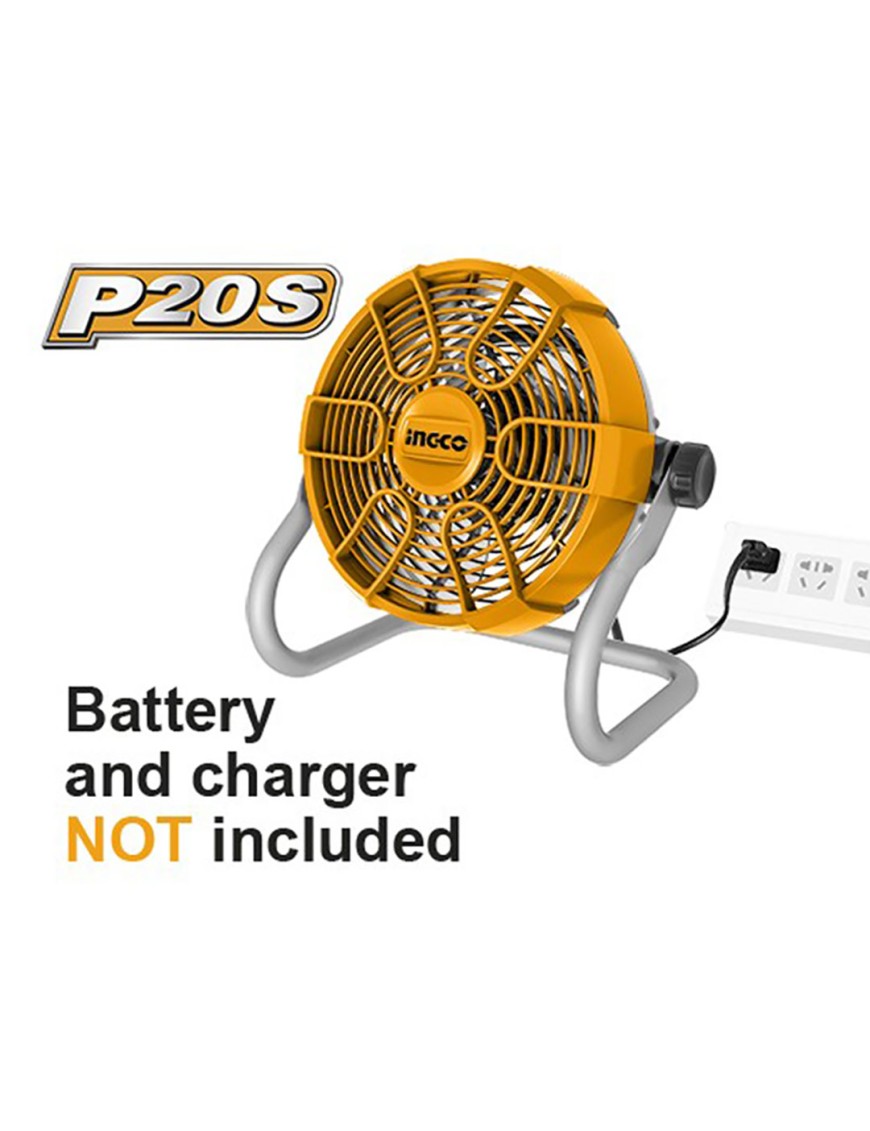Ventilatore a pavimento a batteria 20 V e filo 28 cm 2 velocità Solo Corpo Ingco CFALI2002.
