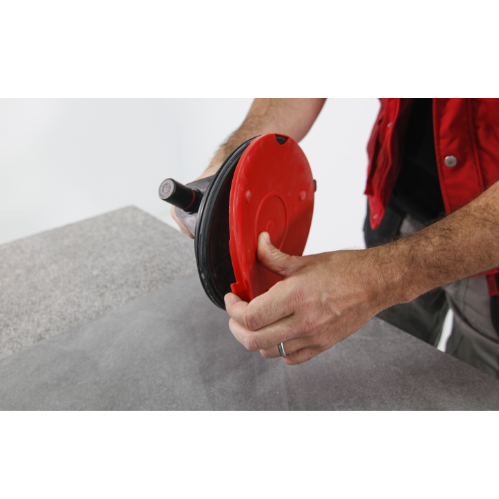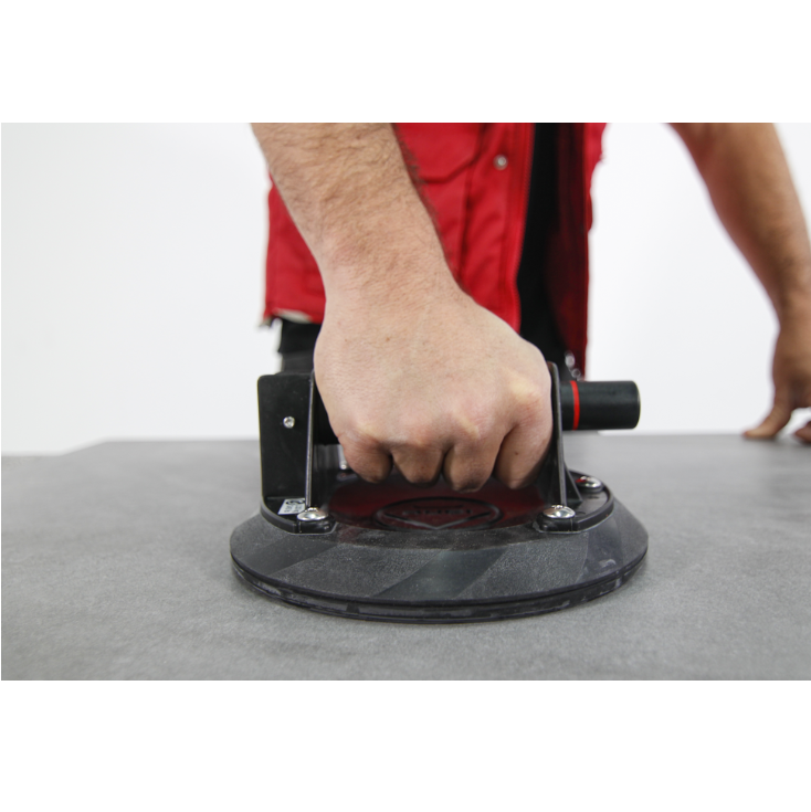 Ventosa professionale SC-200 con pompa del vuoto manuale per il sollevamento sicuro di piastrelle ceramiche di grande formato e peso. Telaio robusto in alluminio, maniglia ergonomica e valvola di rilascio rapido. Compatibile con superfici lisce, ruvide o strutturate.