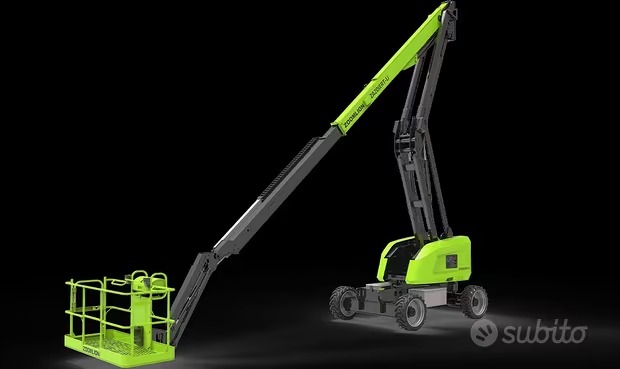 Tipo Semovente Articolato Marca Zoomlion Modello ZA20JERT-Lì Alimentazione Elettrico Altezza al piede 19,38 m Altezza di lavoro 21,38 m Sbraccio 12,10 m Portata 250 Kg Navicella 1,83 x 0,76 x 1,10 m Rotaz. cestello 90°+90° Rotaz. torretta 360° N.C. Pendenza superabile 45% Dimnsioni chiusa 8,80 x 2,46 x 2,52 m Comandi Elettronici Peso 9250 Kg Kit 4.0 Si Batterie Litio.